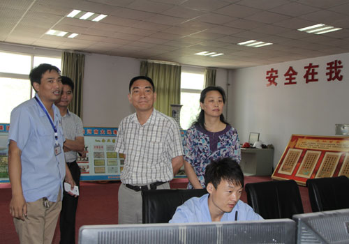在中控室,大地公司总经理王永普讲解了干法水泥生产线从石灰石均化、原料粉磨到熟料烧成、水泥粉磨等生产工艺流程,夏杰长一行详细了解了余热发电等情况,他们对我公司先进的工艺技术及在节能减排综合利用方面取得的成效给予了高度评价和充分肯定。 夏杰长主任(右三)在县委常委、常务副县长马丽(右二)的陪同下参观中控室 夏杰长一行参观文化展板 |