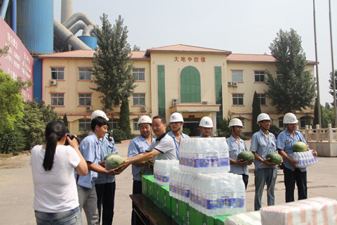 7月13日上午,在县总工会主席郭鹏飞的带领下,县总工会“夏送清凉”活动组一行来到大地公司,送来了西瓜、矿泉水、绿茶、毛巾等防暑降温用品,县委常委、宣传部长李庆豪,集团总裁崔泉发等领导参加活动。 丝丝清凉,浓浓情谊。县总工会“夏送清凉”活动为大地公司职工送来亲切的慰问和夏日的清凉,让广大职工感受到了党和政府的关爱,从而鼓舞了员工士气,激发了员工的工作热情。大家纷纷表示,要提振信心,奋战酷暑,确保顺利完成各项目标任务,为企业的发展作出积极的贡献。 县委常委、宣传部长李庆豪为一线员工发放慰问品 县总工会主席郭鹏飞为一线员工发放慰问品 一份份包含深情厚意的慰问品,让职工们乐开了怀