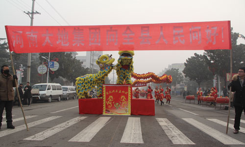 2月5日(农历正月初九)上午,大地集团组织龙狮盘鼓队参加宝丰县第二十三届民间艺术大赛。在县城人民路县委门前,“大地集团向全县人们问好”的大红条幅格外引人注目,精彩的龙飞狮舞不时引来观众的阵阵喝彩。 为搞好此项活动,大地集团聘请许昌市飞跃武术龙狮团前来参演,有声有色,惟妙惟肖的表演为我县民间艺术大赛增添了亮点,增加了艺术种类,活跃了现场气氛。龙狮舞起来,锣鼓敲起来,上下翻飞腾腾而起的巨龙摇头摆尾,象征着大地集团的热烈红火的发展前景;双狮追逐嬉戏,你追我赶,活灵活现,预示着大地集团的无限生机与活力;盘鼓高亢有力的宏音,好似催促着大地集团全体干部职工再向新目标进发。精彩的表演吸引了大批观众,将演出现场围拢得水泄不通,一个个拿出手机拍照录像……。 之后,全体演职人员乘车来到大地集团慰问演出,在大地公司门口摆开龙门阵,精彩的《龙腾狮跃》《双狮闹春》为广大干部职工献上一场精彩的视觉盛宴,赢来阵阵掌声。 |