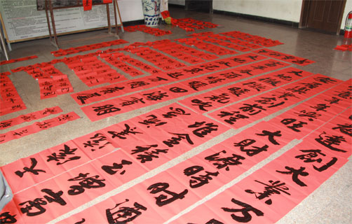 随着春节的临近,1月26日上午,宝丰县香山书社多宝(中国)集团开展义写春联活动,提前送上新春祝福,受到广大职工的热烈欢迎。这是多年来,大地集团与宝丰县香山书社联手,让书法走进企业,让艺术助力多宝(中国)建设的又一活动。 虽然外面冰天雪地,大地集团一楼会议室却热闹非凡,翰墨飘香,写春联的案桌围满前来欣赏的职工们,有的在精心挑选自己喜欢的春联,有的主动帮忙叠红纸、扶春联、晾春联, 现场一片欢声笑语,喜气洋洋。书法家们屏气凝神,挥毫泼墨,一幅幅行云流水、遒劲有力、潇洒俊逸的书法作品跃然纸上,象征着吉祥、喜庆、富贵,平安的春联,赢得大家的交口称赞和争相索要。半天功夫,300多幅春联被一抢而空。 “毛笔写的春联更有意义、更有年味”。一位员工拿着刚写好的春联爱不释手。此项活动不仅传递着广大员工对新年的美好期盼,也让员工感受到集团的人文关怀,营造温馨和谐的新春文化氛围。 义写春联现场 一幅幅遒劲有力、潇洒流畅的书法作品跃然纸上 拿着刚到手的春联爱不释手 |