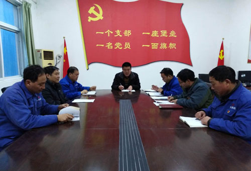 2月2日下午,大地公司党支部在西中控楼二楼党员活动室召开支部党员大会,大地公司全体党员40多人参加了会议。会议由党支部书记赵中要同志主持。 会议首先由组织委员张怀永同志带领大家重温了入党誓词,使每位党员再次接受心灵的洗礼,进一步增强了党员的神圣感、使命感和责任感。接着,支部书记赵中要同志对党员的思想状况进行了全面分析。最后,大家结合自身工作实际,就如何做好一个合格党员进行了深入探讨,大家踊跃发言,会场气氛热烈,纷纷表示,要以实际行动影响和带动身边人,时时处处起到模范带头作用,充分发挥一个党员一面旗帜的作用。 会议现场 会议由支部书记赵中要同志主持 老党员崔永志同志发言