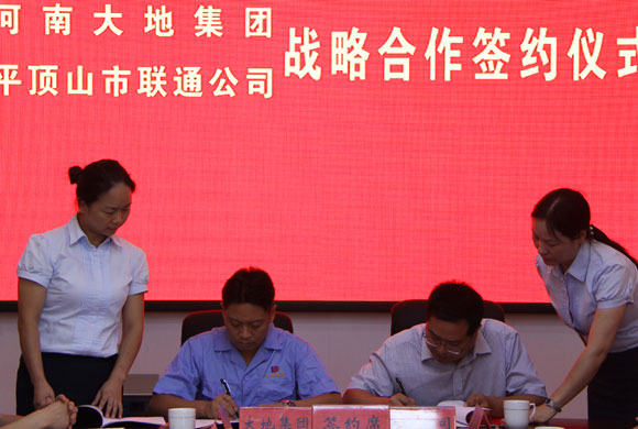 平顶山市联通公司党委书记、总经理朱练忠表示,通过今天的战略合作签约,双方进一步强化合作内容,提升合作价值,在今后的合作中,平顶山联通将进一步加大网络、技术、营销等资源投入,增强支撑保障能力,进一步提升服务水平,建立有效互信的沟通常态机制,高标准推进合作协议落地实施。 双方代表签约 集团总裁王国杰、平顶山市联通公司党委委员、副总经理谢记科分别代表合作双方在战略合作协议书上签字。 签约仪式在庄重、融洽、热烈的气氛中结束。随后,在张彪董事长的陪同下,朱练忠一行先后参观了大地公司中控室和贾湖酒业集团。