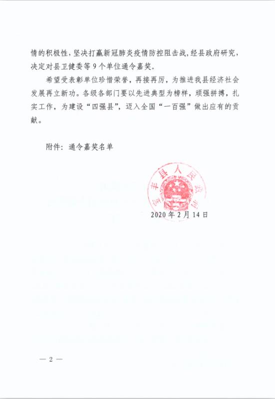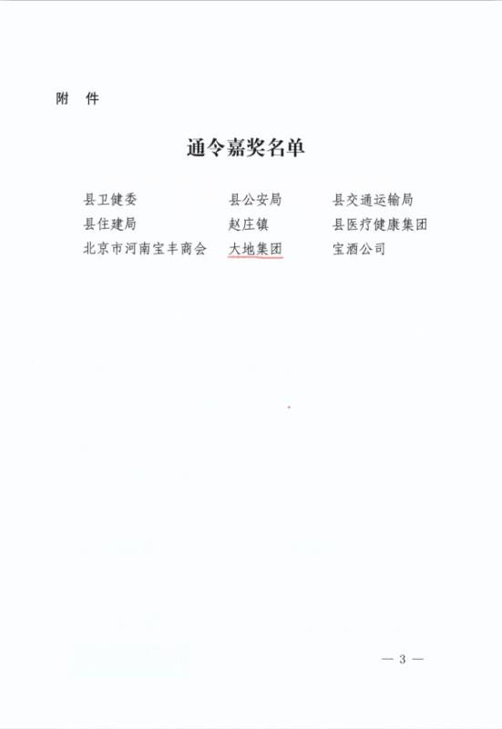 日前,县政府专门下发嘉奖令,对全县疫情防控工作中涌现出的先进单位予以表彰,多宝网页版因工作成绩突出、贡献重大,受到县政府的通令嘉奖。 面对突如其来的新冠肺炎疫情,大地集团迅速行动,坚决把职工的身体健康和生命安全放在首位。在不折不扣地执行省、市、县新冠肺炎疫情防控命令的同时,结合自身实际,周密部署,狠抓落实。第一时间成立了新冠肺炎疫情联防联控工作领导小组,制定了详细的《疫情防控方案》和《疫情应急预案》。集团各部门、各公司认真落实各项防控措施,步调一致、严防坚守,疫情防控和复工复产工作均紧张有序地进行。 大地集团始终弘扬公益精神,积极承担社会责任。新冠肺炎疫情发生以来,大地集团高度关注,在做好自身防控工作的同时, 2月1日下午,集团向河南省慈善总会捐助现金1000万元人民币,用于平顶山市和宝丰县疫情防控工作,为打赢这次疫情防控攻坚战贡献一份力量。 |