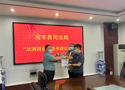 为深入推进“万人助万企”活动,营造良好的法治化营商环境,9月23日上午,宝丰县司法局高级法律专务高凯乐、二级主任科员杨勇一行带领县企业法治服务团队,深入多宝网页版,开展“法治体检”及“法润百企”送书活动,帮助企业“把脉问诊”,提升企业的法律风险意识和防范水平。集团副总裁兼行政部部长张怀点、法务部部长王延玫给予了热情接待。 座谈会上,企业法治服务团队一行通过“面对面”“点对点”的方式,详细了解企业的生产经营情况,对企业安全、环保、市场监管、应急管理等涉法方面提供法治宣传、法治保障和法治服务。并发放了行政执法监督卡,为企业增送了“八五”普法进企业、法律援助指南、农民工的权利保护等宣传资料,增强企业员工的法治观念和法律素养,提高企业的依法治企水平。 |