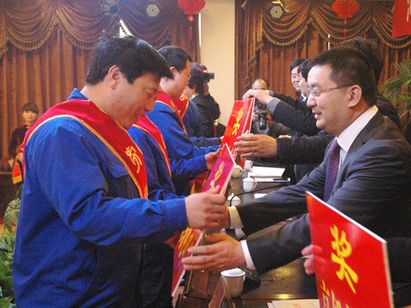 2013年3月16日上午,大地公司北会议室内座无虚席、掌声雷动,到处洋溢着喜庆祥和气氛,大地集团2012年度工作总结暨表彰大会隆重召开。副县长魏学君、县总工会主席郭鹏飞、集团领导、受表彰的先进工作者、优秀经销商、供应商及部分职工代表共700多人参加了会议。 会议由党委副书记王福文主持。会议首先由集团董事长张彪作工作报告。报告对2012年的工作进行了系统回顾总结,充分肯定了所取得的成绩,同时指出了工作中存在的不足和问题,分析了当前面临的形势和任务,并对今年的目标任务提出了明确的思路和要求。对做好2013年的工作,张董事长强调重点抓好7个方面的工作:一、坚持强管理、促销售、创高产、增效益、勇创新的指导方针。二、积极引进先进生产管理人才和技术人才,创造先进的管理模式,加强与先进企业的对标管理,促进生产制度和管理制度的创新,使经济技术指标达到或超过同行业的先进水平。三、坚持“至高品质、至诚服务”的宗旨不动摇,坚持走名牌销售战略,充分发挥大地水泥的品牌优势,鼓励培育专营经销商,并向2级、3级网点发展,牢固占领现有市场,努力拓展新市场。四、加快现有项目的建设进度,确保按计划竣工投产。五、继续坚持“人才是企业第一资源”的指导思想,根据企业发展需要,制订公司中长期人才供需规划,建立人才数据库,为企业快速发展提供人才保障。六、不断充实多宝(中国)核心内容,将良好的多宝(中国)渗入企业肌体,形成一个风气正、人心齐、奋发向上、包容和谐的良好氛围,为企业的快速发展提供动力和正能量。七、进一步绿化、美化厂区,做好厂区环境整治,打造环境最美的花园式企业。 会上,集团总裁崔泉发宣读了“关于表彰2012年度先进集体和先进个人及优秀经销商、供应商的决定”。对荣获劳动模范、技术能手、忠诚卫士、先进集体、先进工作者代表和优秀经销商、供应商代表进行了颁奖。先进单位代表、先进工作者代表、优秀经销商代表分别作了典型发言。 最后,魏学君副县长作了重要讲话。他说,大地集团已连续五年蝉联宝丰县纳税第一名,特别是2012年,在建材市场形势严峻的情况下,仍实现纳税达1.4亿元,连续两年成为我县纳税超亿元企业。县委、县政府将一如既往地高度关注大地集团的发展,努力为大地集团营造更加宽松、更加良好的经济发展环境,坚决做好大地集团发展的坚强后盾。希望大地集团抢抓机遇,创新科技,做大做强,为县域经济的发展作出新的更大的贡献。