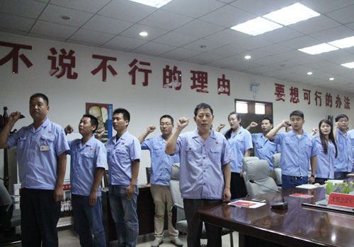 “我志愿加入中国共产党,拥护党的纲领,遵守党的章程……”7月19日下午,大地集团接收新党员宣誓仪式在中控三楼会议室举行,来自集团各党支部的30多名新老党员参加宣誓仪式。集团党委副书记闫中安出席。 宣誓仪式在雄壮的《国际歌》声中开始,现场气氛热烈而严肃。30多名新老党员列队整齐,面向鲜艳的党旗,纷纷举起右手,新党员庄严宣誓,老党员重温誓言,充分表达了大家为党的事业奋斗终身的决心和愿望。 新党员代表张艳乐作了表态发言,老党员代表王永普对新党员的加入表示祝贺!党委副书记闫中安作了总结讲话,并对新党员提出殷切的期望,他希望新党员要永远记住今天这个光荣的日子,牢记党的誓言,履行党的职责,切实把为共产主义奋斗终身的这句誓言,落实到具体工作中去,以实际行动去践行一名共产党员的光荣使命。 宣誓仪式会场 党员宣誓 |