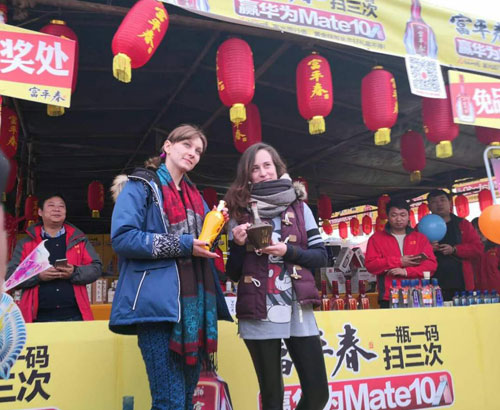 2月27日(农历正月十二)上午,笔者准备赴马街一游。刚到路口,就被“七百年书韵唱响中国梦,九千岁贾湖再现富平春 ”“大地集团预祝2018马街书会圆满成功”的大红氢气球和条幅吸住了眼球。在富平春酒宣传2号展台前,围满了前来品酒、扫码的群众。“今天真得劲!还未到马街就中了一瓶好酒”一位中年人高兴得合不拢嘴。