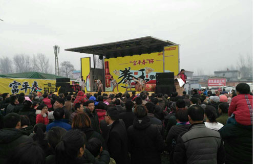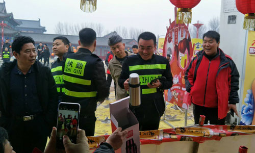 随着涌动的人潮,笔者来到书会现场,沿路两旁挂满了富平春的彩色吊旗和大红气球,把会场装扮得格外热烈和喜庆。会场中间摆满了贾湖酒业义务为广大商和艺人搭建的暖心帐篷。更引人注目的那招人喜爱的瓶模,穿着不同色彩,不同形状的衣服分散在会场各个角落,并不时地与大家握手互动,引得群众与之合影留念,更是惹得小朋友们欢欣不已更为给力的是那神奇惊险的大巴悬浮超人不时与现场群众争相留影互动。