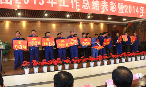 2013年1月16日,大地公司北大门彩旗招展、气球高悬,大红的条幅和巨大的彩虹门格外引人注目,多宝网页版2013年工作总结表彰及2014年工作部署动员大会正在北门会议室隆重召开。来自大地公司、森佳公司、吉森公司、富平春酒业有限公司等分公司部分干部职工及集团领导300多人参加了会议。 会上,集团董事长、总裁、副总裁分别与所属各分公司层层签署了《2014年工作目标管理责任书》。签订者依次上台作表态发言,大家纷纷表示要以此次会议为契机,全面落实董事长的讲话精神,开拓创新,真抓实干,为全面完成2014年的各项工作任务而努力奋斗! 总裁崔泉发宣读了“关于表彰2013年度先进集体和先进个人的决定”。会议对荣获2013年度先进工作者代表、先进集体代表、技术能手、忠诚卫士、劳动模范进行了颁奖。先进集体代表、先进个人代表分别作了典型发言。 最后,集团党委副书记闫中安作了总结讲话,他说,董事长的高屋建瓴,鼓舞人心,是指导新一年工作的行动纲领和工作指南,具有承上启下的重要意义。他要求,各单位、各部门要认真贯彻好落实好讲话精神,采取强有力措施,确保全年各项任务圆满完成。 大会会场 董事长张彪作工作报告 总裁崔泉发宣读表彰决定 集团总裁与供应公司负责人赵中要签订目标责任书 劳动模范上台领奖 集团领导与富平春酒业有限公司获奖人员合影留念