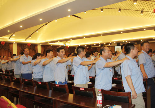 中旭培训会场上员工进行互动游戏