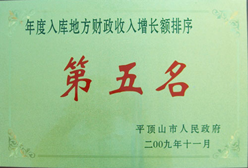 首页 >> 多宝(中国) >>资质荣誉 >> 年度入库地方财政收入增长额排序第五名